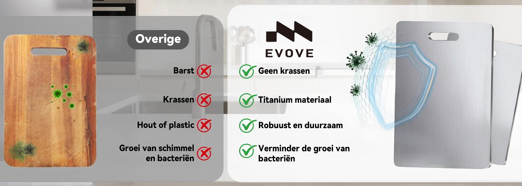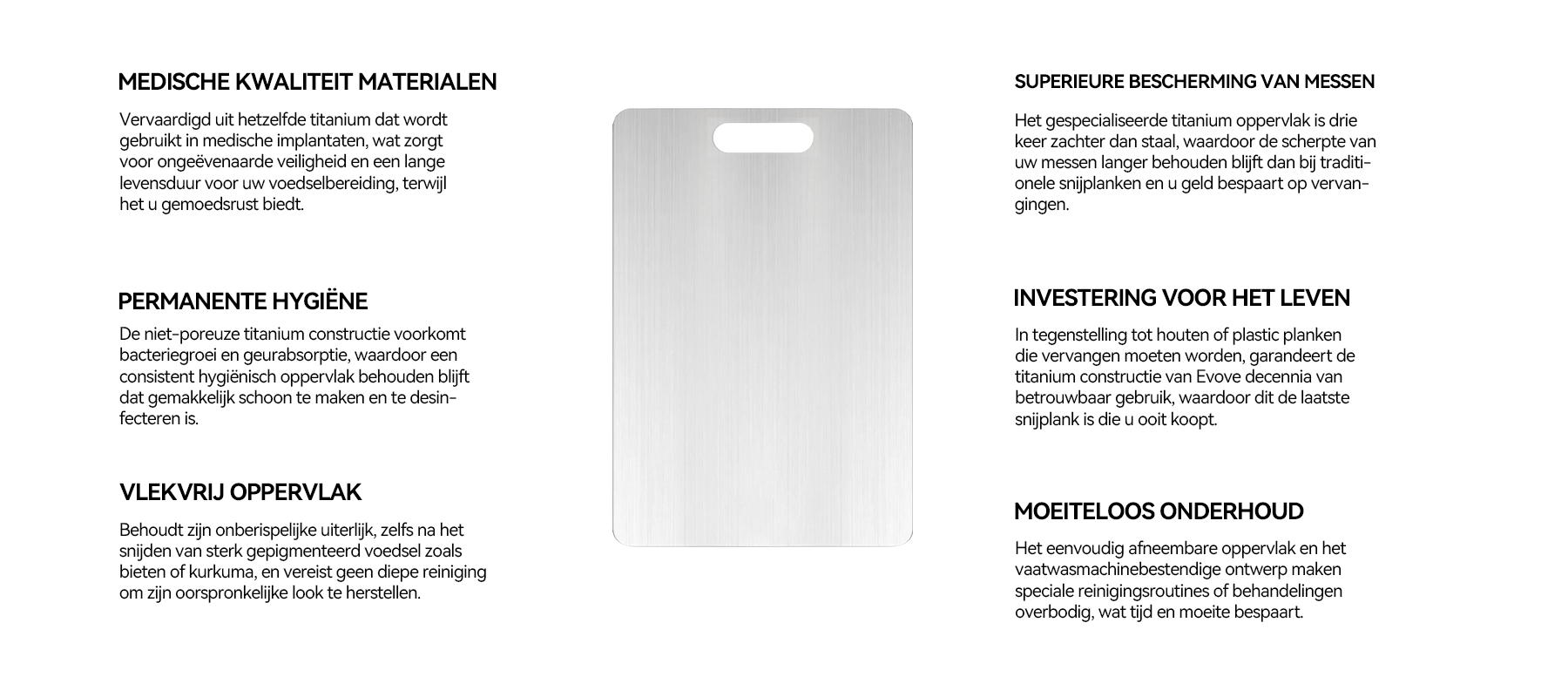 Ervaar Ongeëvenaarde Duurzaamheid en Schoonheid met de Evove Titanium Snijplank.