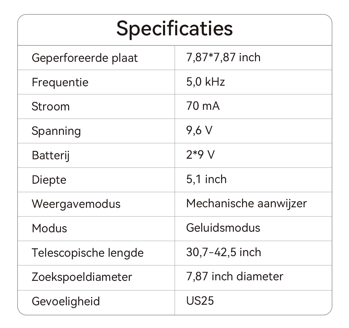 - Intuïtieve Bediening: Eenvoudige bediening en een laag-batterijwaarschuwing houden je zoektocht in gang.